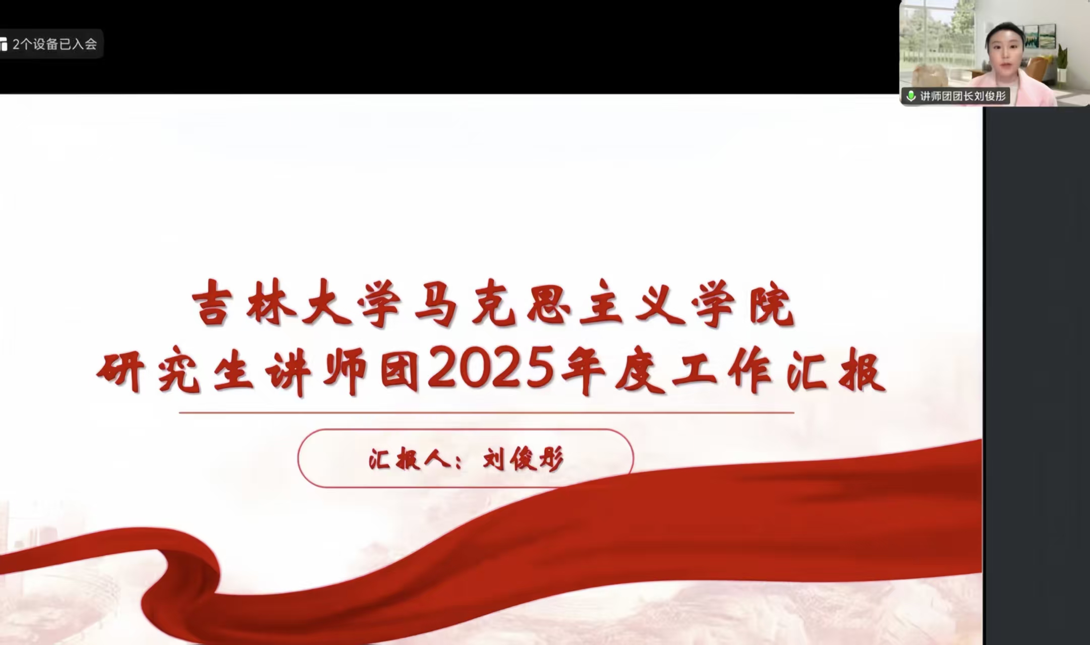 接着,讲师团团长刘俊彤进行工作汇报。本年度,讲师团以队伍建设为重点,围绕学习贯彻党的二十届四中全会精神,组织成员赴长春市委党校开展主题研学,并与二道区税务局联合参观主题展馆,在沉浸式学习中深化理论理解、提升宣讲能力。新的一年,讲师团将进一步强化与院内及校外“姊妹”讲师团的联动,围绕校史与马克思主义中国化历程策划开展巡回宣讲、专题讲述沙龙等系列活动,持续打造具有影响力和示范性的理论宣讲队伍。