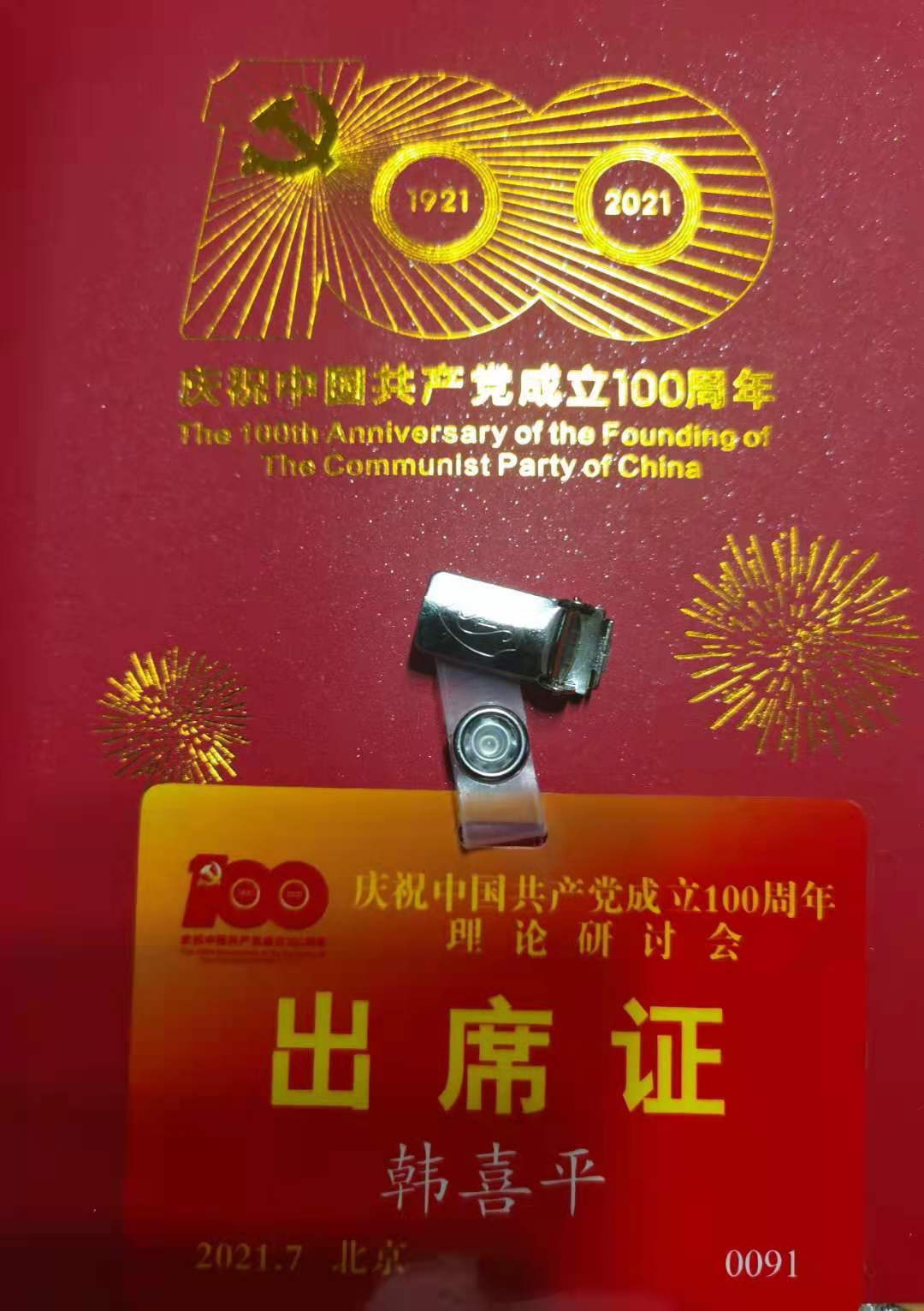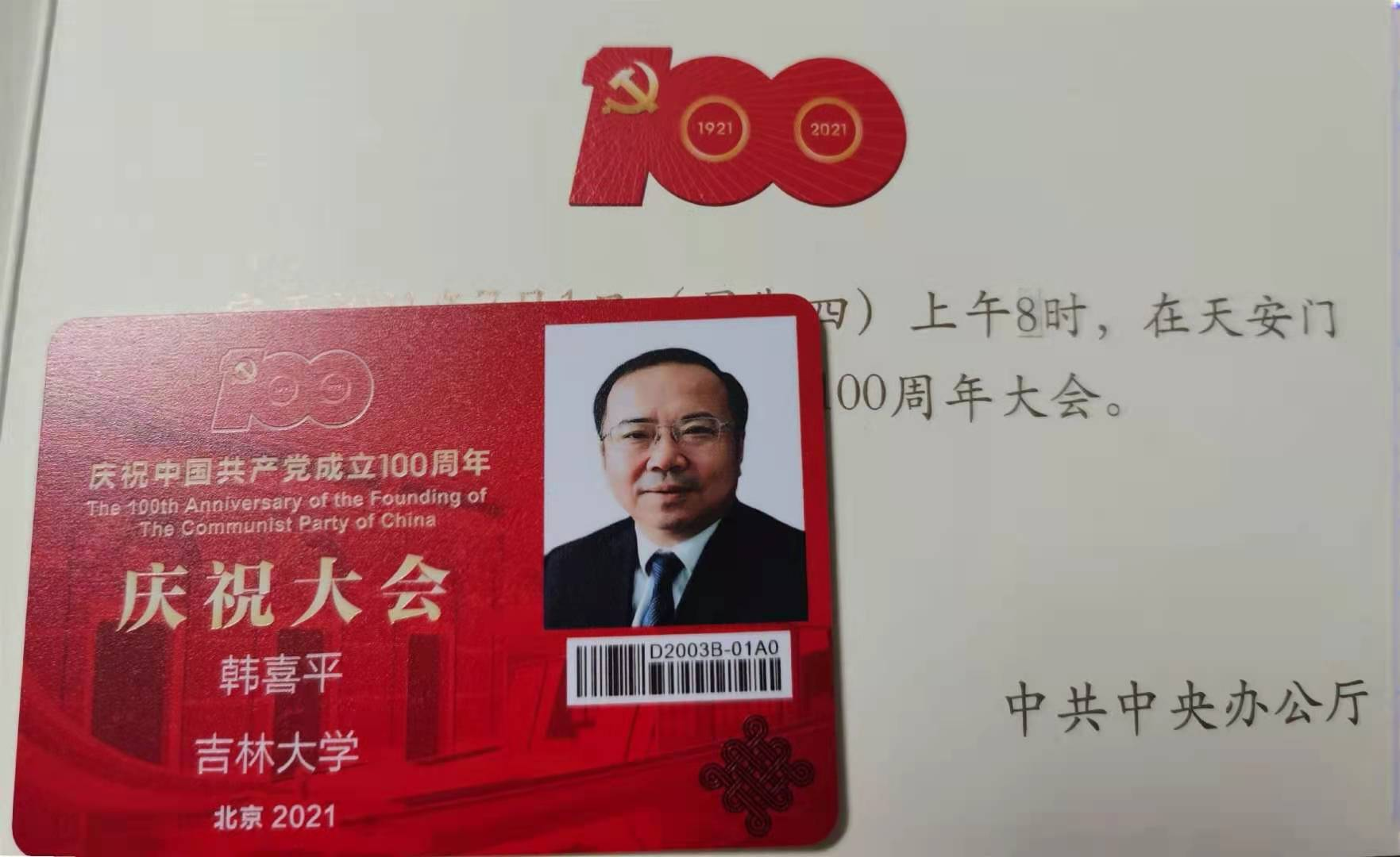 7月1日上午,韩喜平教授在天安门城楼参加了庆祝中国共产党成立100周年大会,现场聆听了习近平总书记的重要讲话。