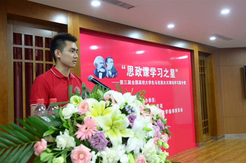 中国人民大学雷引杰同学代表全体营员分享了参加此次夏令营的收获感悟。他回顾了学员们学习理论、品读经典,围坐研讨、畅所欲言,走出书斋、参观访查的学习经历,认为本次夏令营为同学们提供了一个学习知识、增长见识、收获友谊的平台,使自己的思想认识、理论素养、综合能力都有很大提升,也更加坚定了心中的马克思主义信仰,对马克思主义理论的学科自信更加强烈。他还代表夏令营学员对教育部社科司和辛勤付出的老师、同学们表达了衷心的感谢,并表示要在今后“风霜恒不渝”地坚守马克思主义信仰,“真学、真懂、真信、真用”,做马克思主义的践行者和传播者。