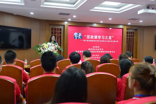 表达了对教育部社科司、参与本次夏令营的专家学者和全体营员的感谢,并衷心祝愿同学们在本次精心准备的夏令营中学有所获。她指出,这场夏令营对同学们来说是一场思想政治理论学习的盛宴,也是一场短暂但意义深刻的学术锻炼之旅。在这场盛宴中,同学们在加强马克思主义理论修养,提升思想认识;加强主题教育,坚定“四个自信”;体验魅力思政课,增强获得感;提升能力水平,结下深厚友谊四个方面取得了收获。她希望在座的“思政课学习之星”们能够“点亮心中的信仰,照亮身边的朋友,闪亮今后的人生”。