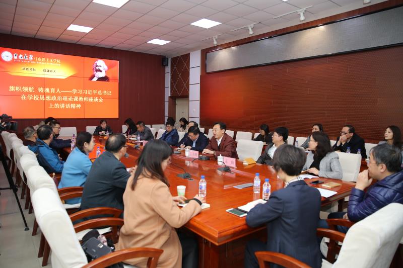 组织师生代表收看了习近平总书记在学校思想政治理论课教师座谈会上的重要讲话并召开座谈会。吉林大学常务副校长邴正、党委宣传部副部长王巍和部分教师代表参加了座谈会。炸金花在线