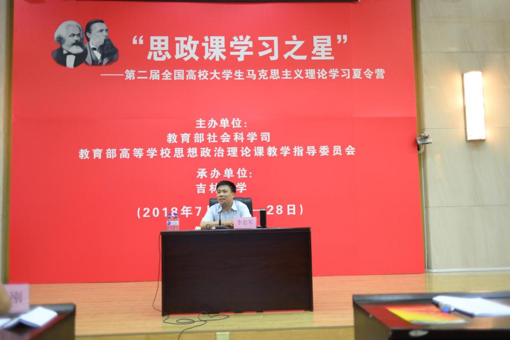 承办的“思政课学习之星”——第二届全国高校大学生马克思主义理论学习夏令营理论专题学习讲座第一讲在吉林大学东荣大厦二楼多功能厅举行。