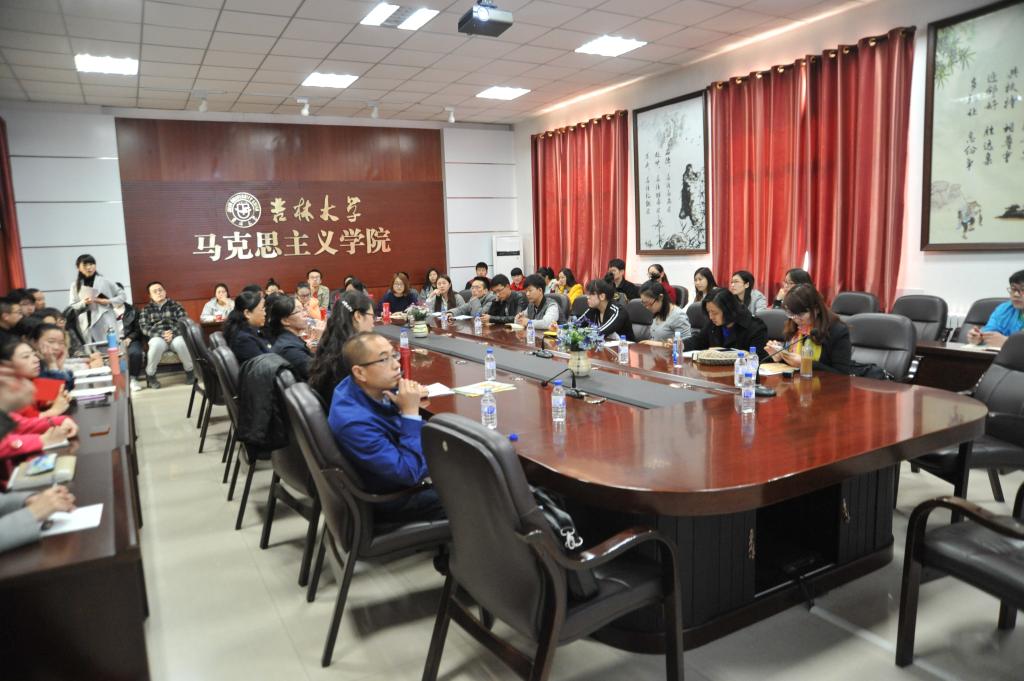 张艳梅教授以《美国高等教育管窥》为题讲述了她在美国范德堡大学访学的经历。从范德堡大学的概况到哲学系概况,从本科生教学到研究生专业具体情况,从硬件设施到“软件”情况,从师资到学生,从课程设置到作业考试,张老师都作了详尽地介绍。石瑛教授在韩国梨花女子大学访学,她结合中国发展的实践,以熟悉与重新认识:韩中互鉴的视野、民族与世界:韩国德育的两个比较和提升与超越:我的几点感悟等为视角,详细对比了中韩两国的德育状况。她认为,随着中国经济社会的发展,要逐步提升个人自身素质、坚持“四个自信”,以提升中国的文化软实力。刘姝副教授在美国Vanderbilt University访学一年。刘老师从“感受美国的简单”切入点,以丰富的图片内容就小学教育、高等教育向大家做了介绍,她结合自己的访学经历,分别就国家意识、课程学习、社会实践以及推进社会创新的方式,与在座的师生进行了交流。